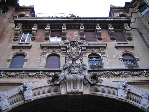זו היתה תחושתי במפגש עם רובע קופדה (Quartiere Coppedè). שום מקום ברומא לא הכין אותי למחזה הסוריאליסטי הזה, שנראה כמו תרגיל מבריק בהנפשת פנטזיה. צעדים ספורים מפיאצה בואנוס איירס, באיזור טרייסטה (Trieste) שבצפון מזרח רומא, ניצב שער אבן אדיר ממדים המחבר בין שני ארמונות בעלי צריחים מתומנים. דרכו נכנסים לרובע, שלמראה בנייניו יוצאי הדופן אי אפשר להישאר אדישים. בחזית השער והארמונות עשרות אלמנטים עיצוביים: מסכות, פיות, מלאכים, פרחים, פירות ועוד. ממרכז השער משתלשלת מנורת קנים מברזל, משמאלו בריכה עם דגיגי זהב.
